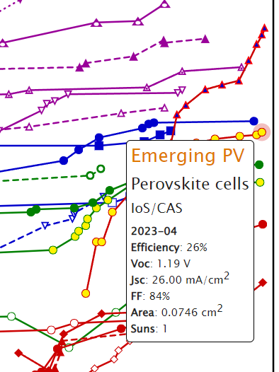 NREL保留了一份圖表,顯示了一系列光伏技術(shù)的研究電池的最高確認(rèn)轉(zhuǎn)換效率。這是那個圖表的互動版本。